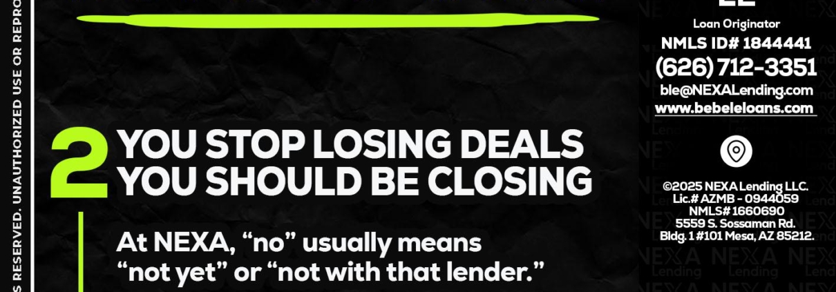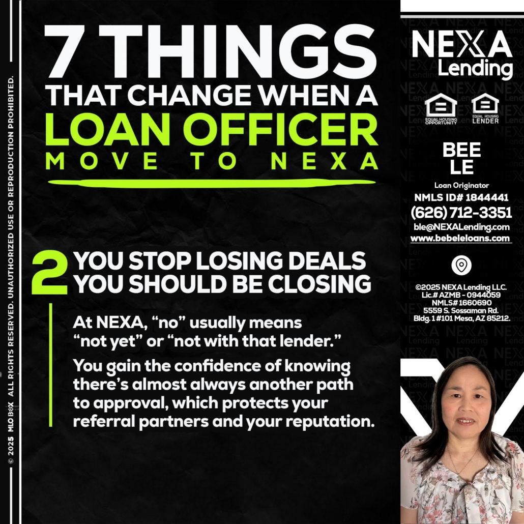 Hi, my name is Bebe Le- Serving California. I’m a Loan Officer with NEXA Lending LLC., offering personalized mortgage solutions, fast customized quotes, great rates and service with integrity.