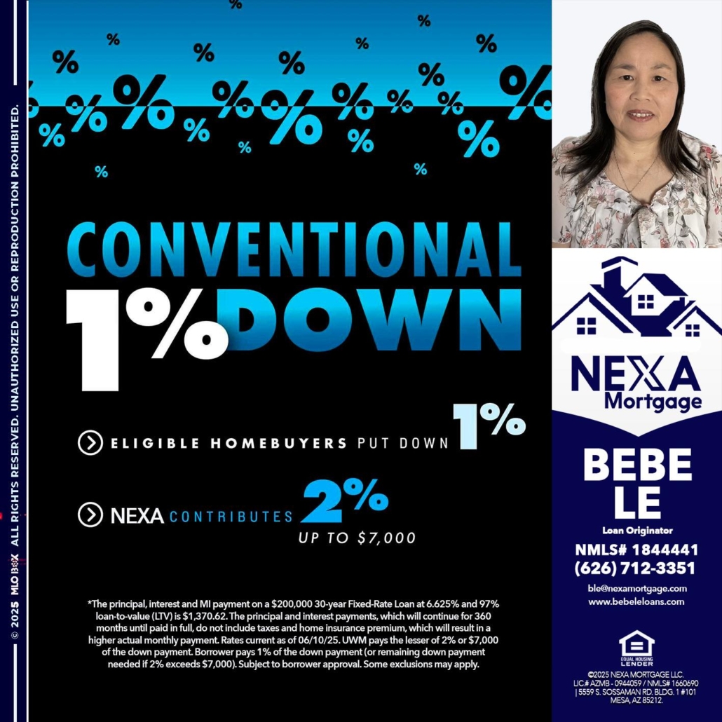 Hi, my name is Bebe Le- Serving California. I’m a Loan Officer with NEXA Mortgage LLC., offering personalized mortgage solutions, fast customized quotes, great rates and service with integrity.