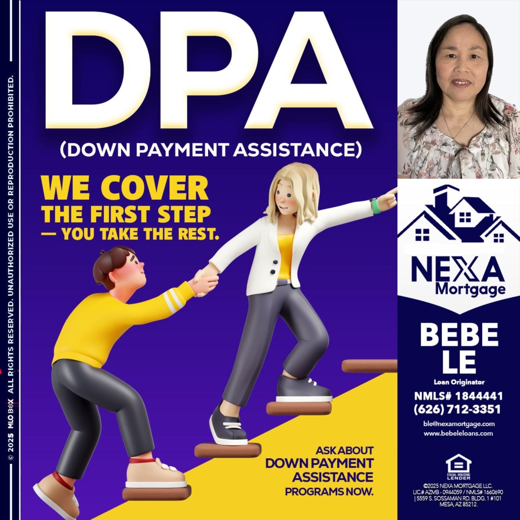 Hi, my name is Bebe Le- Serving California. I’m a Loan Officer with NEXA Mortgage LLC., offering personalized mortgage solutions, fast customized quotes, great rates and service with integrity.