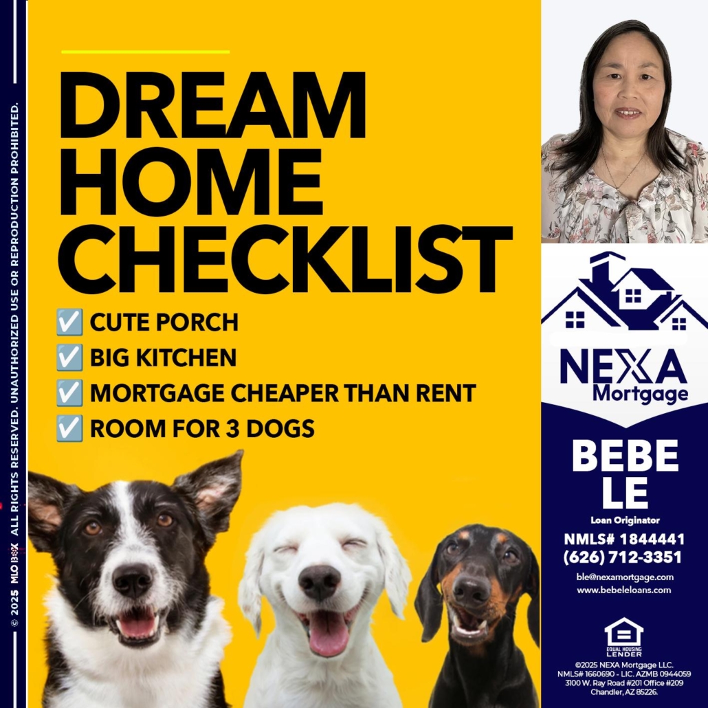 Hi, my name is Bebe Le- Serving California. I’m a Loan Officer with NEXA Mortgage LLC., offering personalized mortgage solutions, fast customized quotes, great rates and service with integrity.