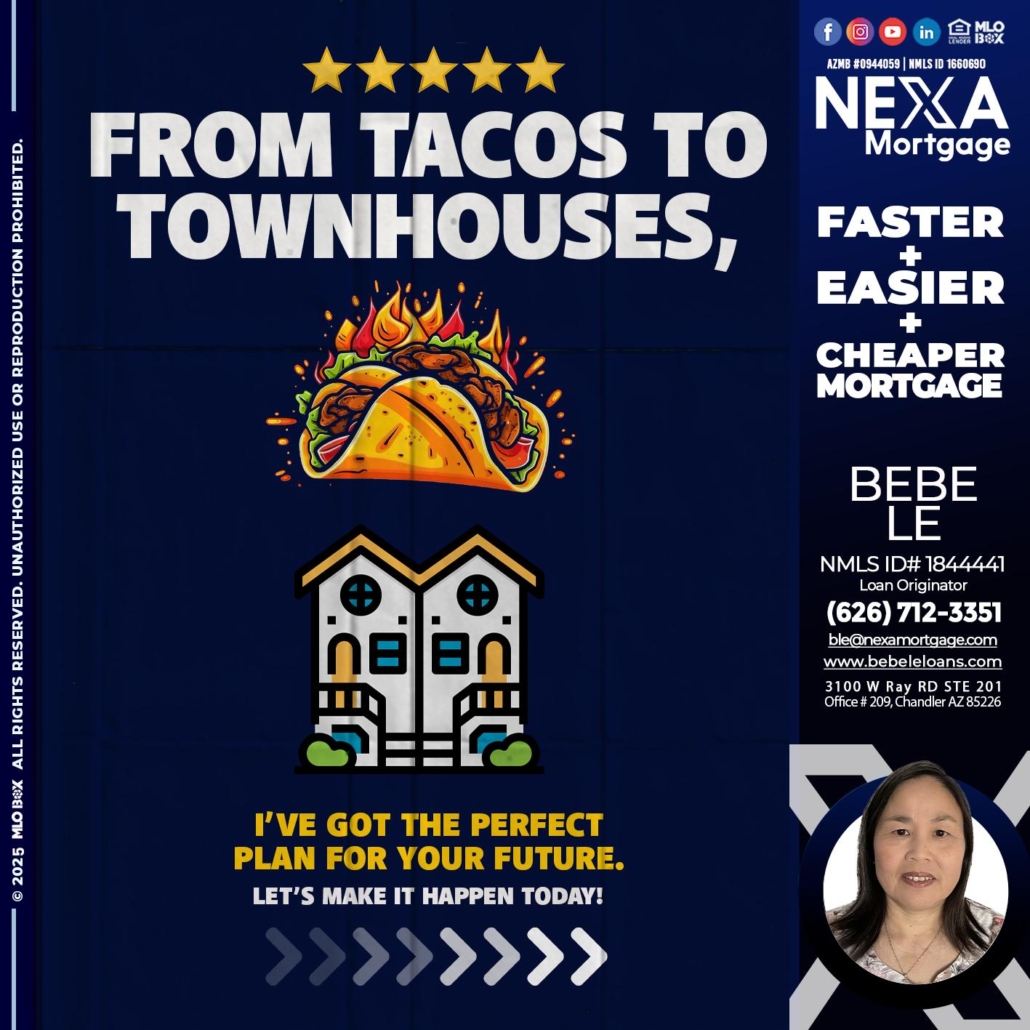 Hi, my name is Bebe Le- Serving California. I’m a Loan Officer with NEXA Mortgage LLC., offering personalized mortgage solutions, fast customized quotes, great rates and service with integrity.