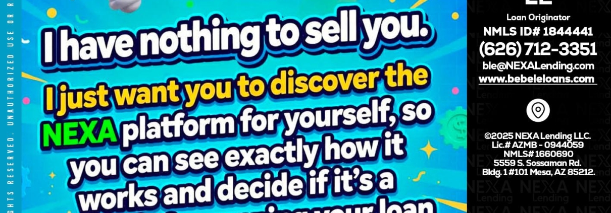 Hi, my name is Bebe Le- Serving California. I’m a Loan Officer with NEXA Lending LLC., offering personalized mortgage solutions, fast customized quotes, great rates and service with integrity.