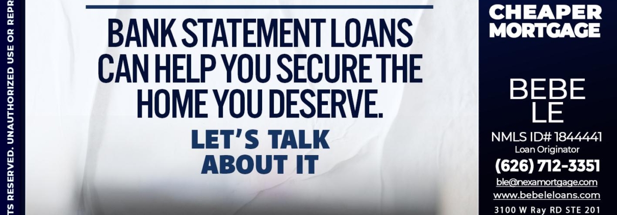 Hi, my name is Bebe Le- Serving California. I’m a Loan Officer with NEXA Mortgage LLC., offering personalized mortgage solutions, fast customized quotes, great rates and service with integrity.