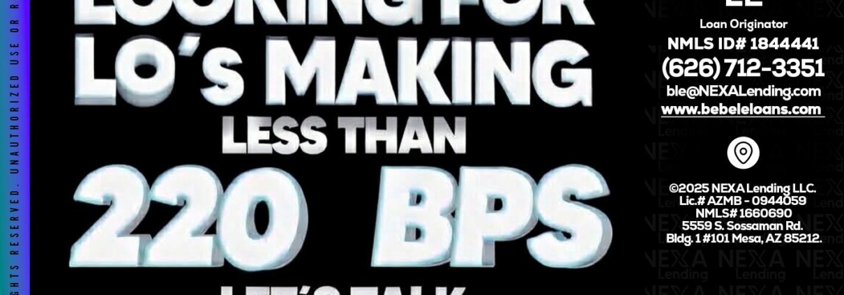 Hi, my name is Bebe Le- Serving California. I’m a Loan Officer with NEXA Lending LLC., offering personalized mortgage solutions, fast customized quotes, great rates and service with integrity.