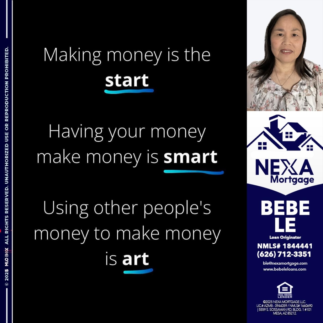 Hi, my name is Bebe Le- Serving California. I’m a Loan Officer with NEXA Mortgage LLC., offering personalized mortgage solutions, fast customized quotes, great rates and service with integrity.