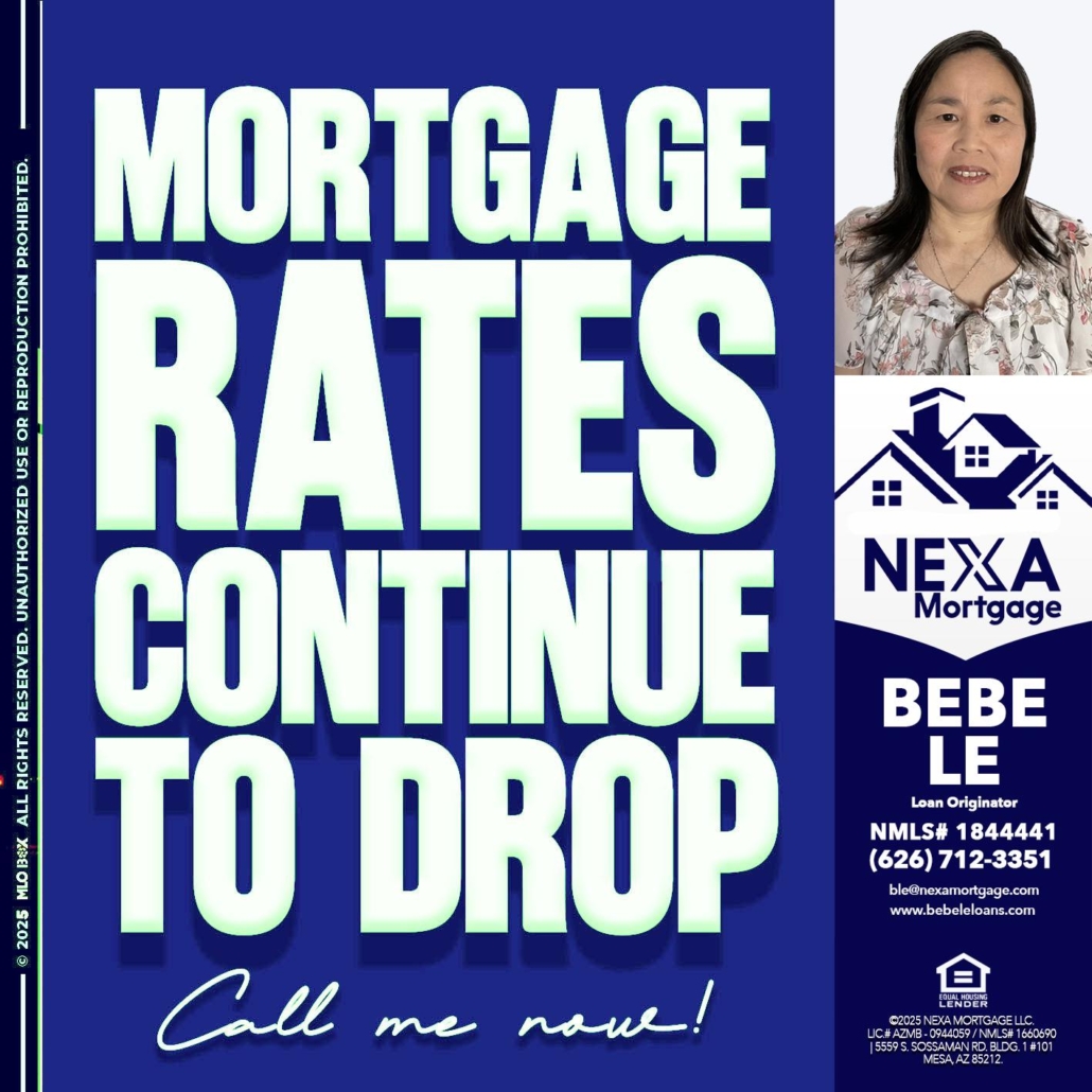 Hi, my name is Bebe Le- Serving California. I’m a Loan Officer with NEXA Mortgage LLC., offering personalized mortgage solutions, fast customized quotes, great rates and service with integrity.
