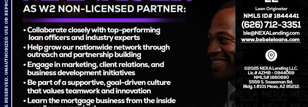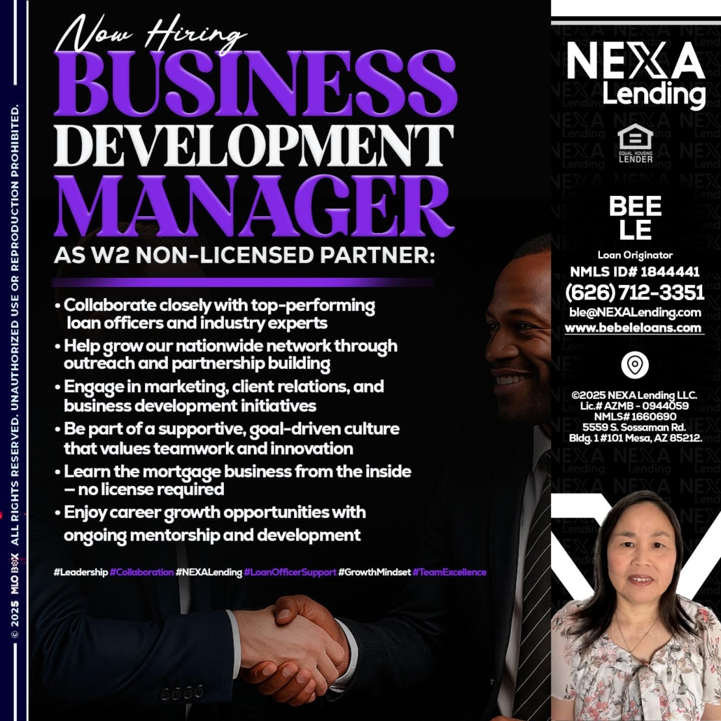 Hi, my name is Bebe Le- Serving California. I’m a Loan Officer with NEXA Mortgage LLC., offering personalized mortgage solutions, fast customized quotes, great rates and service with integrity.