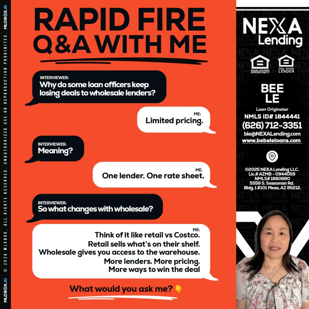 Hi, my name is Bebe Le- Serving California. I’m a Loan Officer with NEXA Lending LLC., offering personalized mortgage solutions, fast customized quotes, great rates and service with integrity.