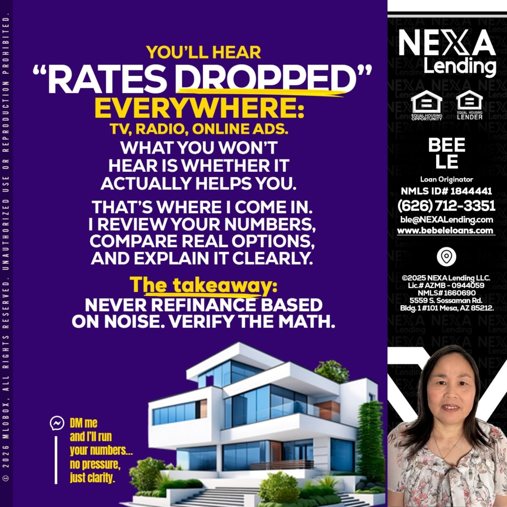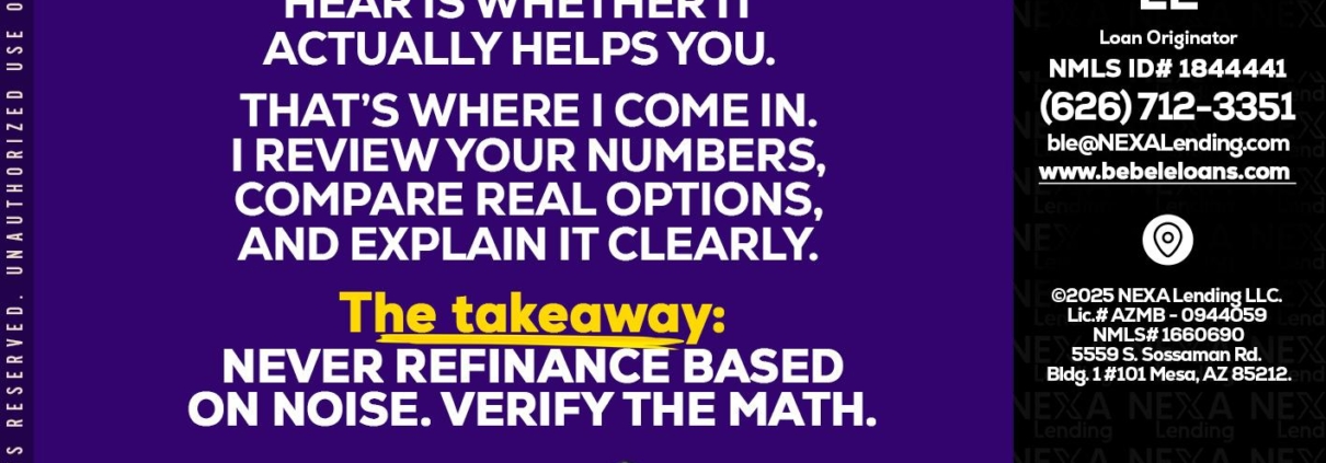 Hi, my name is Bebe Le- Serving California. I’m a Loan Officer with NEXA Lending LLC., offering personalized mortgage solutions, fast customized quotes, great rates and service with integrity.