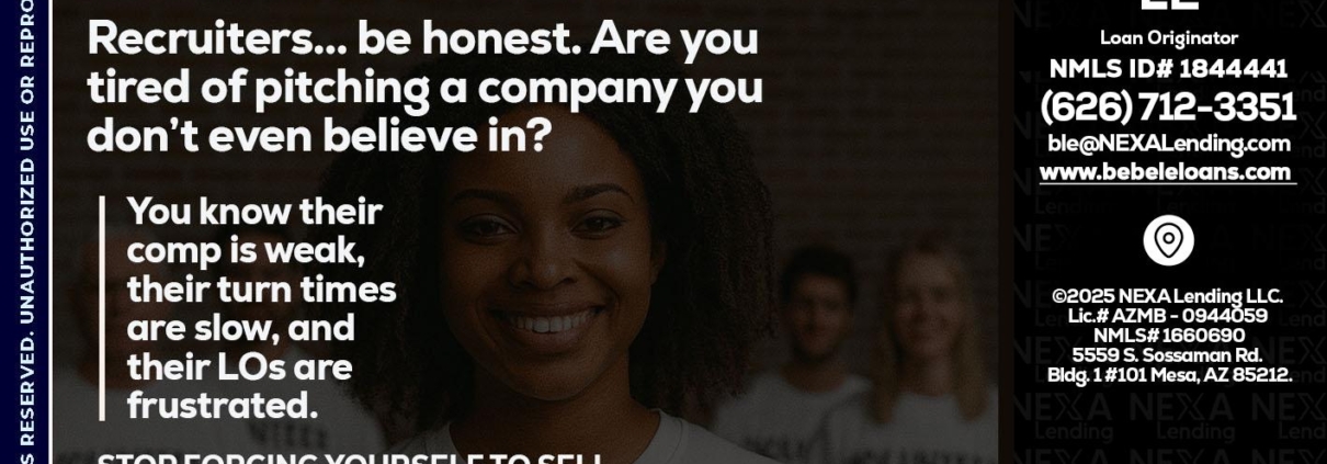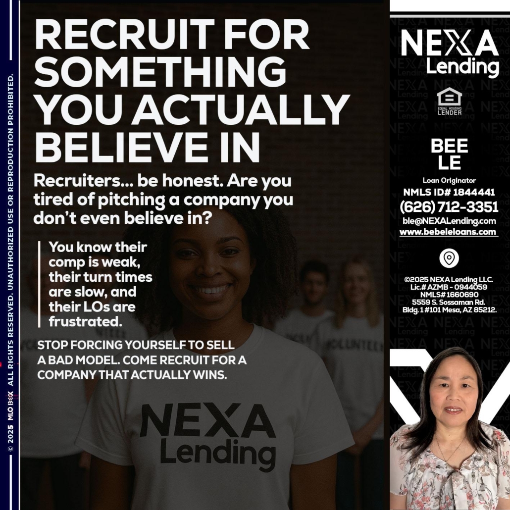 Hi, my name is Bebe Le- Serving California. I’m a Loan Officer with NEXA Mortgage LLC., offering personalized mortgage solutions, fast customized quotes, great rates and service with integrity.