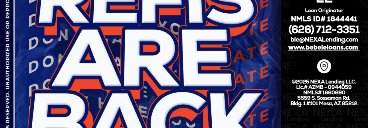 Hi, my name is Bebe Le- Serving California. I’m a Loan Officer with NEXA Mortgage LLC., offering personalized mortgage solutions, fast customized quotes, great rates and service with integrity.