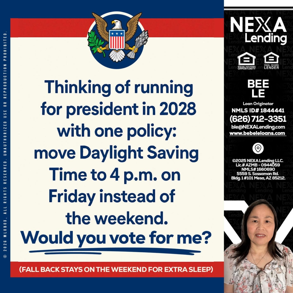 Hi, my name is Bebe Le- Serving California. I’m a Loan Officer with NEXA Lending LLC., offering personalized mortgage solutions, fast customized quotes, great rates and service with integrity.