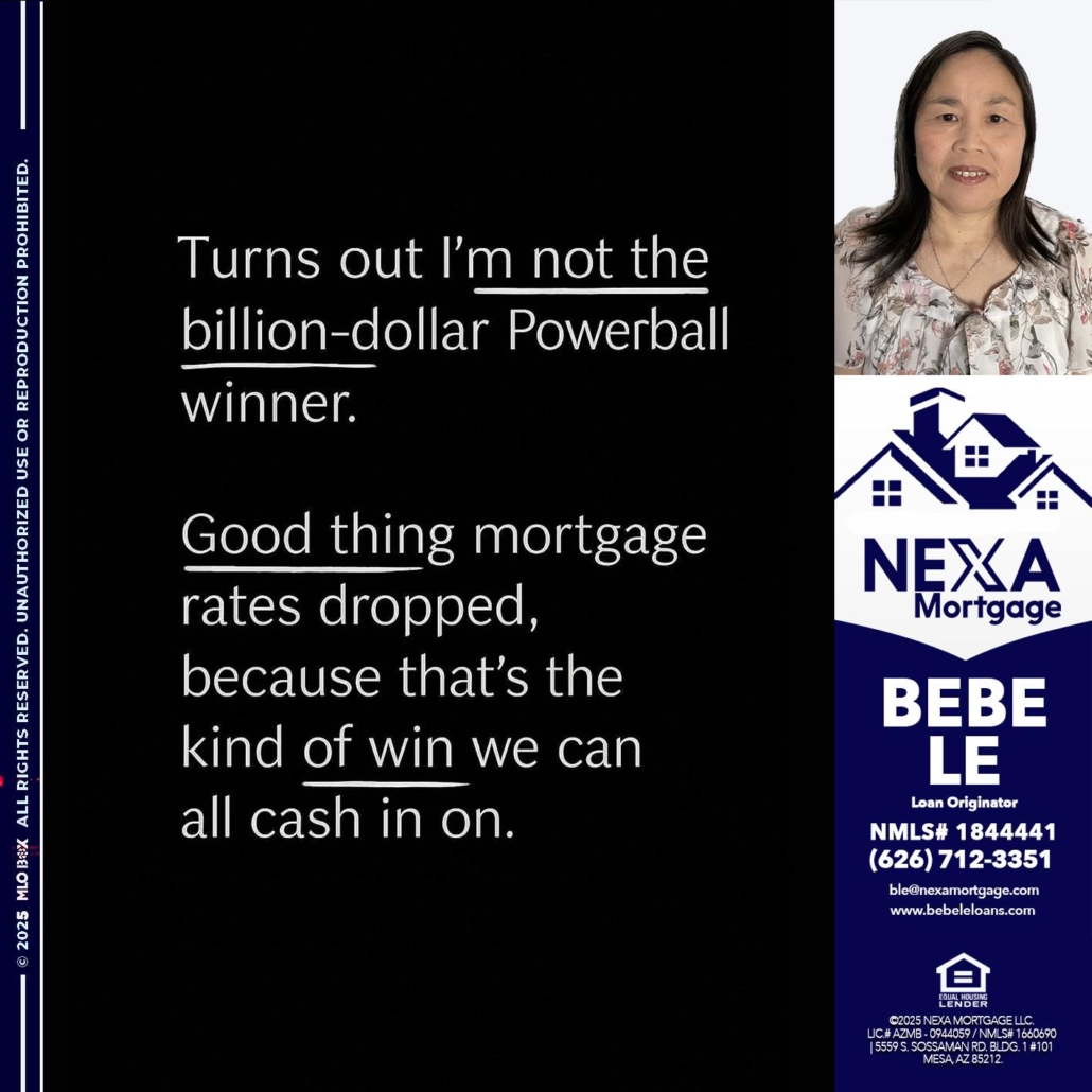 Hi, my name is Bebe Le- Serving California. I’m a Loan Officer with NEXA Mortgage LLC., offering personalized mortgage solutions, fast customized quotes, great rates and service with integrity.