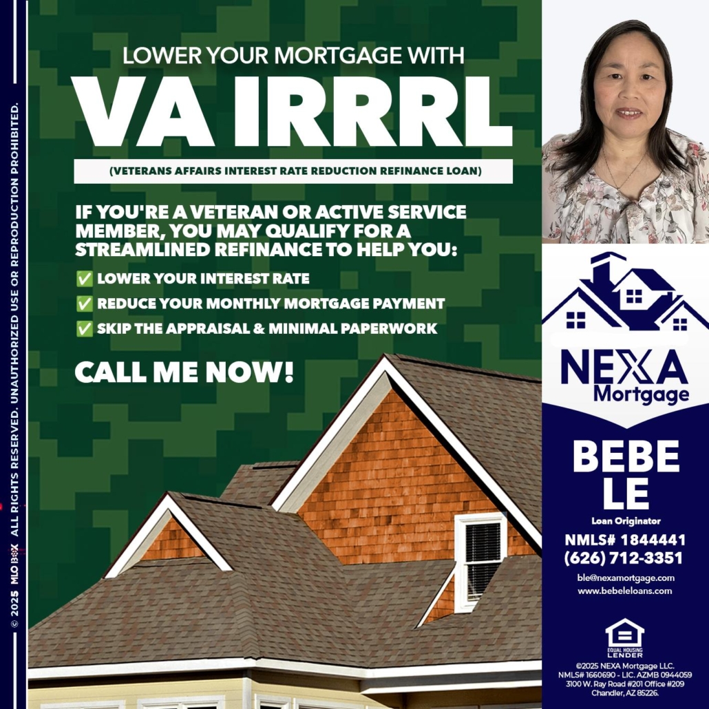 Hi, my name is Bebe Le- Serving California. I’m a Loan Officer with NEXA Mortgage LLC., offering personalized mortgage solutions, fast customized quotes, great rates and service with integrity.